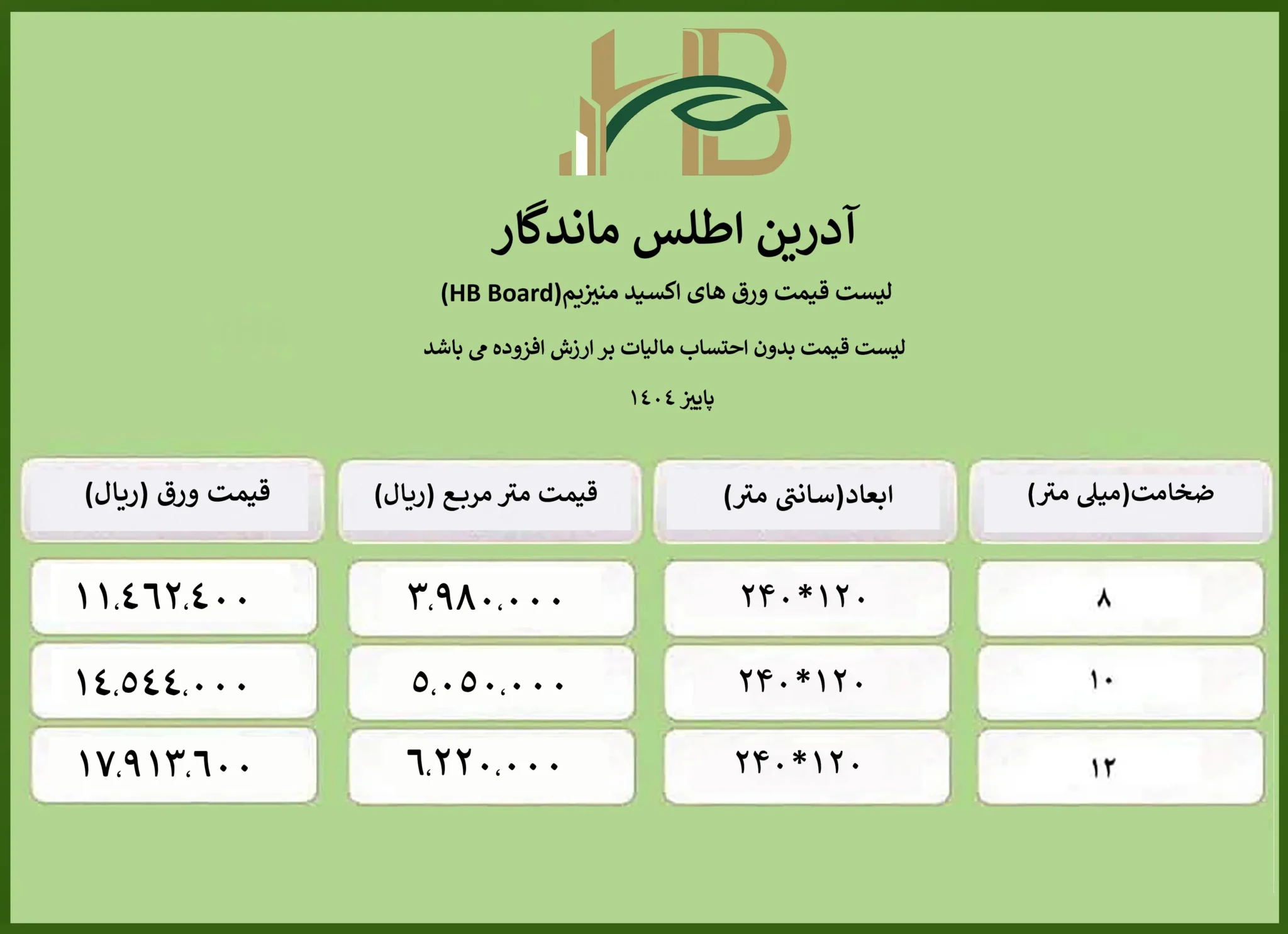 سعر ألواح أكسيد المغنيسيوم (MgO) | خريف 1404